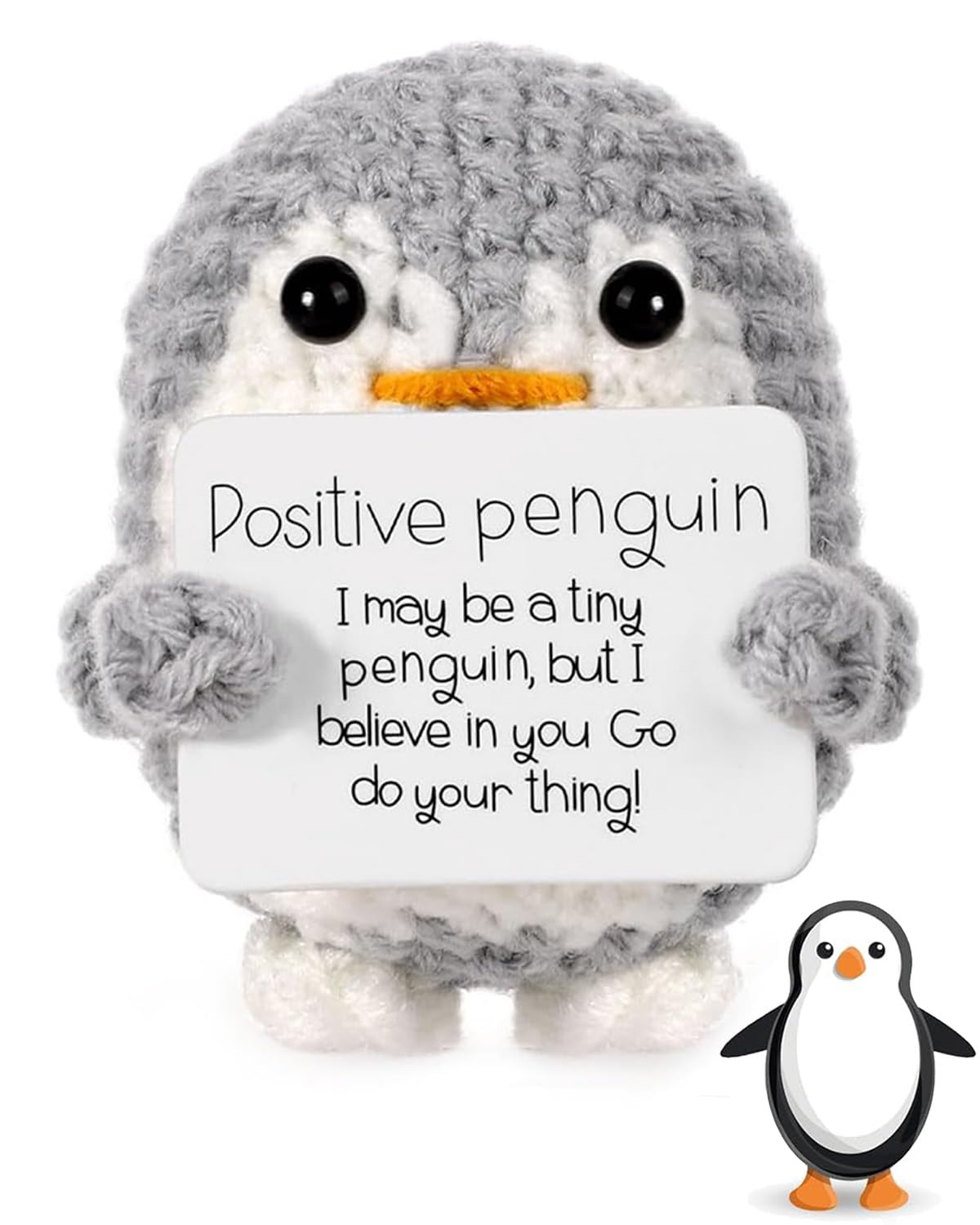 NHCDFA Synthetic Gift, Emotional Support Gift, Gifts For Woman, Funny Crochet Penguin Doll With Positive Message Card, Cute Desk Decor For Home Or Office, Men Women Gifr For Birthday Christmas (Grey)